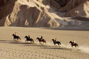 The Explora is a small chain of high-end adventure travel hotels in Chile (other locations are Patagonia and Easter Island.) Every night after a lush meal with full red Chilean wines, they bring out a menu of the next day’s athletic adventure options. In Atacama, I galloped on horseback for hours, up and down sand dunes and through walled canyons (I’ve never ridden like this in The States. It was wild.) I hiked and caved in the desert, one of the driest spots on earth – so dry, in fact, lunar landings have been practiced here. I mountain biked on cracking vast mud flats past pink flamingos and buoyantly bobbed in a lake as salty as the Dead Sea in Israel. I will forever remember the night in which we climbed a notably tall dune, and lay on blankets under a canopy of what felt like low-hanging stars (in the words of Jimi Hendrix, “Excuse me while I kiss the sky.”) Magical.