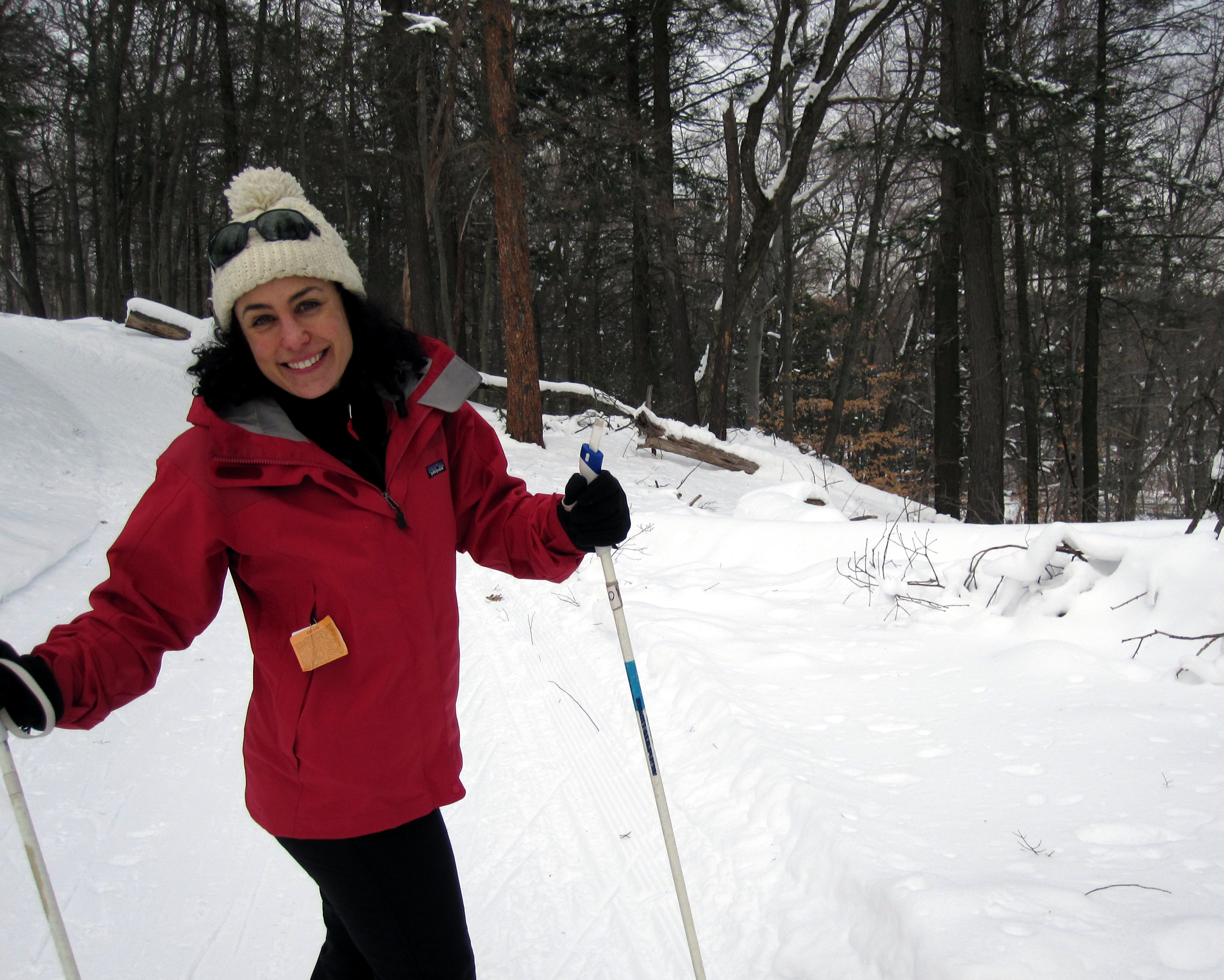 Escape from New York! My friend, Fina, and I rented a car last Saturday and headed up to Clarence Fahnestock State Park for a day of cross country skiing and fresh air. Cross country skiing is an amazing exercise that burns approximately 1 billion calories/hour (okay that’s a stretch…here are the real – and astounding, nonetheless – details, courtesy of ESPN.com.) But what was truly awesome about this excursion  was how  easy it was.  Fahnestock is 55 miles north of Manhattan (Cold Spring, New York, is nearby) and in the winter it offers groomed trails for cross country, snowshoeing and inner-tube sledding. Travel is 80 minutes, tops, and you can rent equipment there – best to get there by 11 am or so on a weekend just in case supplies run out – or bring your own.  It’s cheap ($25 for gear and a day pass) wholesome fun. The trails cross flat open  fields and frozen lakes (great for skiing fast or learning how to glide to extend your stride) or they twist and turn, up and down, through the woods. Fina and I skied beginner, intermediate and expert trails (where we caught a few nice hills and a few resulting face-plants)  and we warmed up by the fire outside the lodge when our fingers got cold.   I stayed toasty in my Patagonia Storm Gore-Tex miracle jacket, the same one that took me up Kilimanjaro. All in all, ’twas a Norman Rockwell meets Robert Frost delight, with some serious cardio thrown in. By the time  we wolfed (oh, sorry, “ate”) our apres ski dinner, we had earned it.  So have a little adventure and trade  taxi honks for the muffled quiet of frozen trees and snowy fox tracks. Shhhhush. You’ll be glad you did. I, for one, can’t wait to go back – xoxo Steph