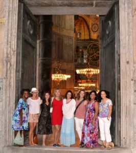 Happy Escape-To-Shapers outside one of the massive iron doors of the Hagia Sophia