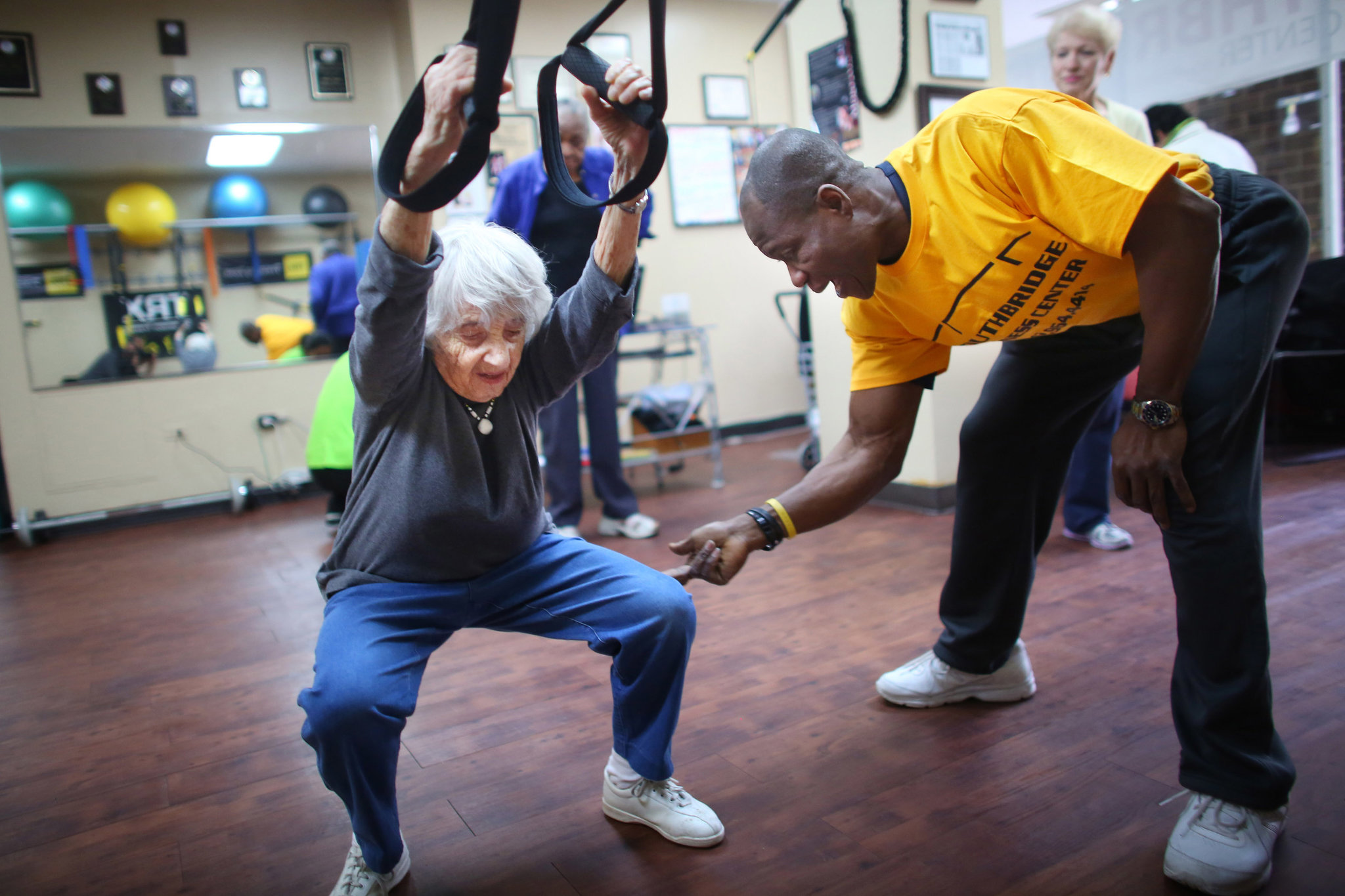 Shirley Friedman, a silver-haired 90-year-old standing 4 feet 9 inches, shifted into another gear, bending at the knees for multiple repetitions.